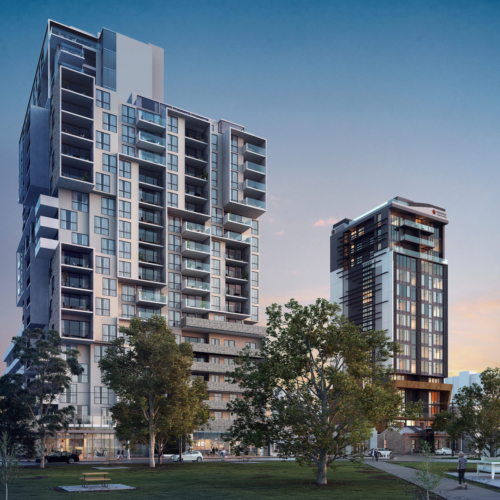 The proposed building optimizes the site by retaining most of the meaningful existing structure. Giving new life to the existing row housing units by repurposing them as the hotel lobby. The podium form, scale and materiality are designed to create a dialogue with the existing row housing units. A contemporary gesture of large-scale Neolith Iron Corten Satin tiles arranged in a brick bond pattern contextualise the podium with the existing bluestone and red brick walls. The tower element above the podium extends up to reference the existing platform of Bohem Apartments nearby, providing an orderly transition from the large scale building complex to lower level buildings.