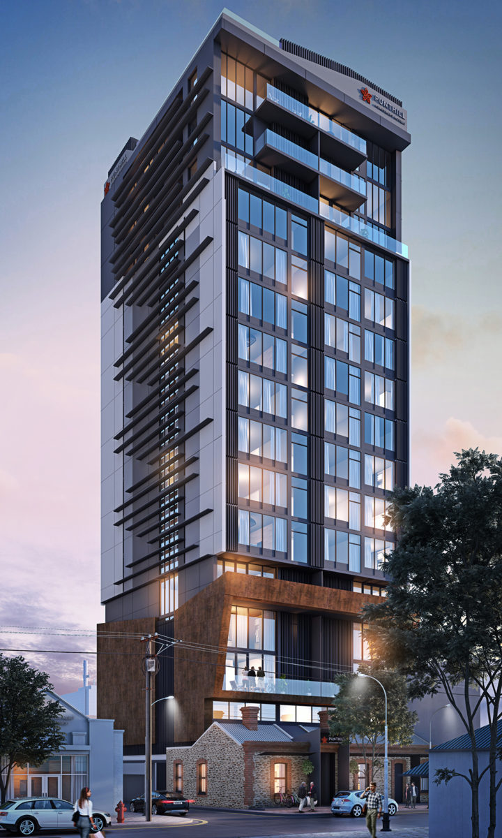 Design a high quality and innovative hotel that responds to its surrounding context. In particular acknowledgement to the existing built form and enhancement of the immediate site characteristics, namely heritage row housing and contemporary aspiration.